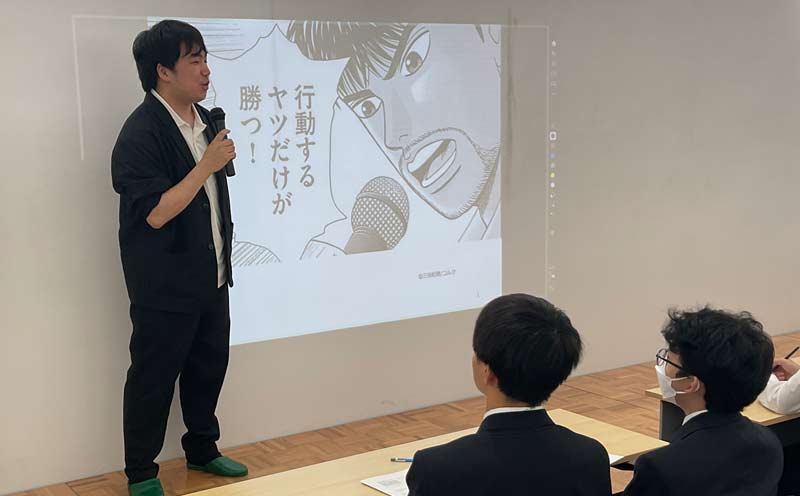今回の海p特別講座では、秋吉樹先⽣が最近注⽬されている「Chat GPT」についてご講演してくださいました。秋吉先⽣は現在、「株式会社DGベンチャーズ」でご活躍中であり、⻄⼤和学園の25期の卒業⽣でもあります。秋吉先⽣はこれまでに「マサイ族にホームステイ」「スラム街を訪れる」「ホストクラブに体験⼊店」など、さまざまな体験を積まれてきました。私は⽇常では得られない知識や経験を求めて⻄⼤和学園に⼊学しました。ですので、秋吉先⽣の経歴を知り、その多様さに感動しました。同じような⼈⽣を歩みたいと強く感じました。