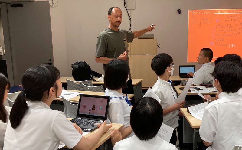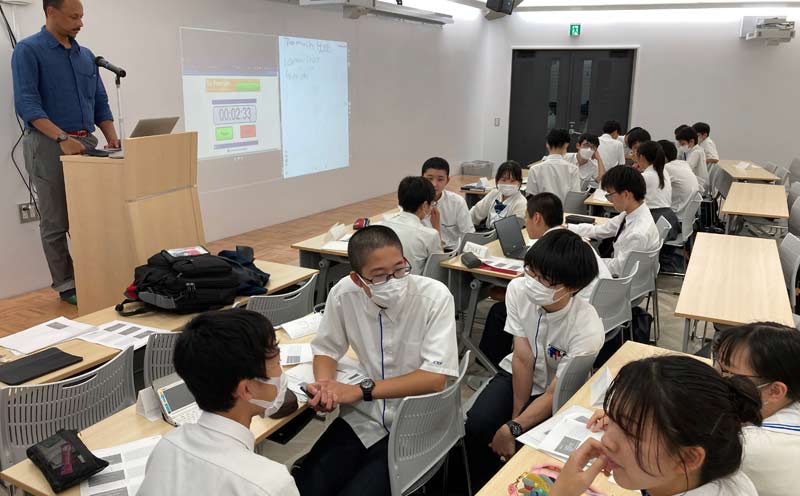 コーチたちは、オックスフォード大学、ケンブリッジ大学、UCLAなどの出身で、生徒4、5人のグループにつき1人の割合でついてくれ、グループごとに得意なことを発表したり、コーチたちの大学の話やLife Missionを聞いたり、日本や世界が抱える問題をディスカッションしたりしました。
