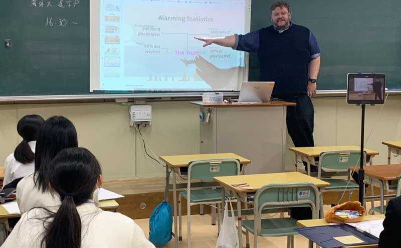 そこで、先生は相手に具体的な答えを求める質問をすることが重要だと話していました。 たとえば、「なぜ〜か」「あなたはどう思うか」といった質問があります。実際に授業内 では、「プラスチックと環境問題」をテーマにしたスライドを用いて、たくさん質問する 練習を行いました。「プラスチックはどのように作られるのか」「どのようにリサイクルされるのか」といった些細な疑問でも質問することで、理解が深まると思います。