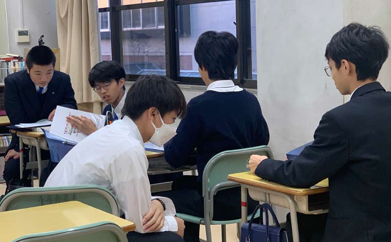 ディベートでは意見を言う場面、反論する場面などいくつかの場面があり、わたしたちはそれぞれの場面ごとに担当を決め、グループに分かれて次回行われるディベートに向けた準備を行いました。