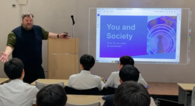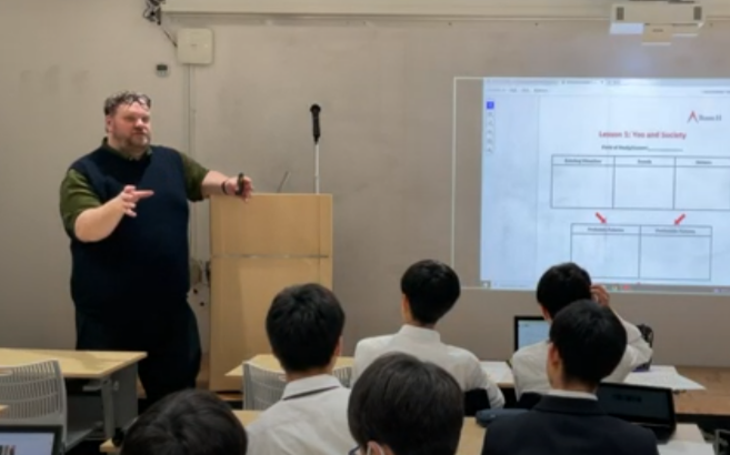今回は、全体で行う今年度初のRoute H特別講座でした。まず今年度新たに第1期生を担当して頂くデイビッド先生の自己紹介からアイスブレイク、それから憧れの人物について、また彼らに共通することなどについて考えました。そして、未来について考えるというのはそもそもどういうことか?ということを考え、教育、エネルギー技術、アパレル、配達の4つの分野の現在の社会と比較した未来の社会の変化や求められるスキルなどについて考えてディスカッションをしました。そして最後はこれらのことを踏まえた上で、現在の自分と未来の自分のことについて考えました。