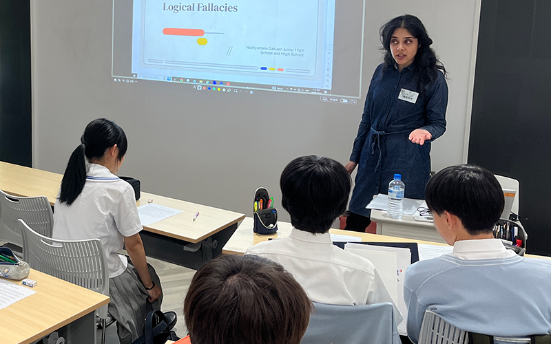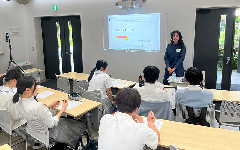 今回のRoute H 特別講座では “Logical Fallacies” についてでした。前回の講座で学んだ “logic” をもとに、”logical fallacies” つまり「論理的な誤り」のことについて学びました。この「論理的な誤り」はエッセイに入れてはいけないらしく、見抜く力が必要とされるそうです。まずは7つのタイプについて知りました。Slippery Slope や Straw Man など、面白い名前のものが多かったです。一通り全部のタイプに触れると、プリントに書かれた例を判別したりどこが誤りなのかを探したりする作業をグループでしました。似たようなものが多かったので、少し難しかったです。最後は自分で “fallacy” を書いてみて、お互いのをシェアしました。大学受験で大切になってくるエッセイを書くのに重要な講座だったと思います。